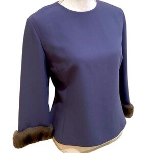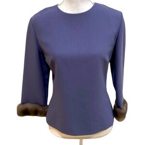 Vintage 1990’s Chetta B. Designed by Sherrie bloom & peter Neviolle lavender lined crew neck 3/4 sleeved back zipper. Mink trim on cuffs. Lining has some discoloration. Made in USA. Made of viscose & polyester. Elegant. Sophisticated. Timeless. Classic. Designer. Office. Day to night. Euc
