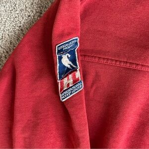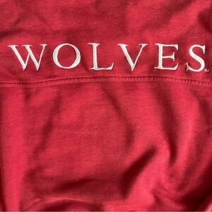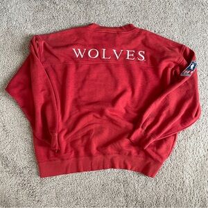 Bold red sweatshirt. Features fierce wolf graphic. Comfortable and stylish.