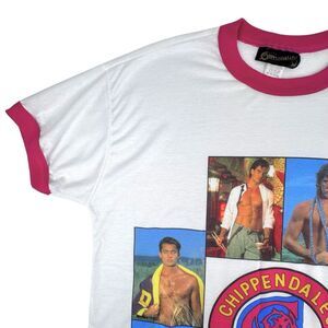 Vintage 90s Chippendales Stripper Sleep Shirt Pink Ringer Tee Single Stitch USA