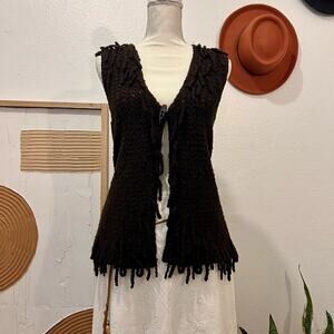 Vintage 90s Chocolate Brown Wool Knit Fringe Single Button Vest Medium