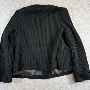 Vintage 90s Chore Jacket Womens XL Black Chunky Knit Sleeve Boho Chic Coat Retro