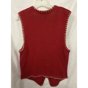 READ SEE PHOTOS: this super cute preowned Christmas Sweater Vest has been worn and I am pointing out a couple of small issues that I noticed. There is a spot just above the candy cane on the right side and it looks like the broom stick handle is missing a few of the black beads. Please look the pictures over carefully, including measurements.