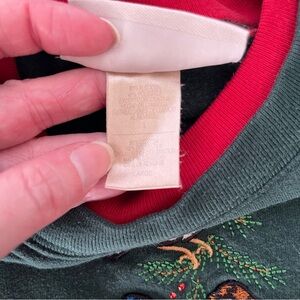 Vintage 90’s Green Christmas Tree with Birds Embroidered Crewneck Sweater