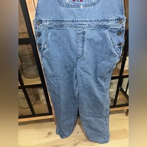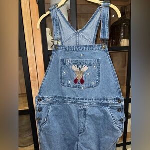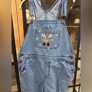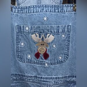 🎄Vintage 90s Christopher & Banks Moose reindeer Embroidered Denim Overalls jeans