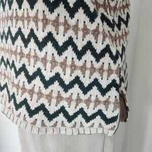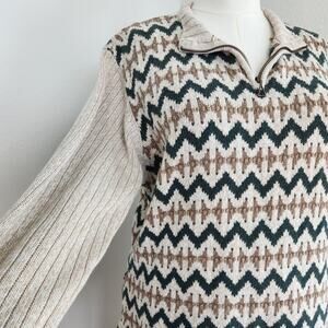 Vintage 90s Christopher & Banks Tan Green Southwestern Knit Quarter Zip Sweater