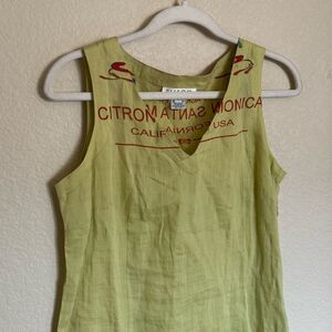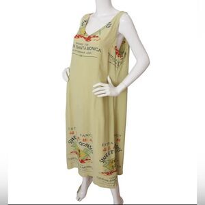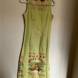 Vintage 90s Citron Santa Monica Midi Dress Logo Lemon Crate Sleeveless Sz Small