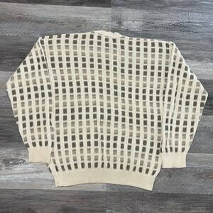 Vintage 90s Claiborne Cream Mens XL Geometric Knit Crewneck Grandpa Sweater USA