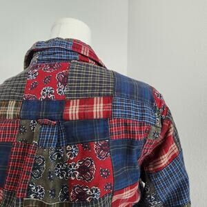 Vintage 90s Class Club Patchwork Plaid Bandana Print Cotton Button Down Shirt M