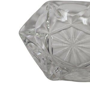 Vintage 90s Clear Glass Hexagonal Star Ashtray Geometric Heavy Duty Retro Decor