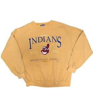 Vintage 90s Cleveland Indians SpellOut MLB Cotton Crewneck Sweatshirt Size Large