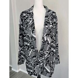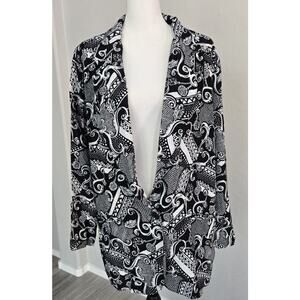 Vintage 90s Clio Abstract Art To Wear Black White Jacket Blazer Button Sz L