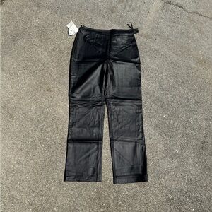 Vintage 90s Clio Black Real Leather Straight Leg Pants Size 12 NWT 31”