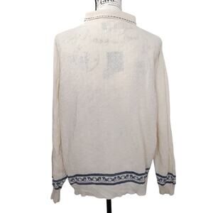 Vintage 90s Collared Polo Sweater Blue Birds Cream XL Grandmacore Farmhouse