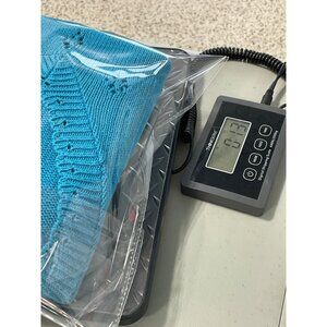 This women's medium turquoise sweater by College Point features an intricate eyelet design, a flattering V-neck, and short sleeves. Made from 100% cotton, it offers a breathable and comfortable fit.