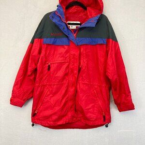 Vintage 90's Columbia Windbreaker Jacket Womens Size Medium Red Hooded Nylon