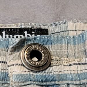 Vintage 90s Columbia youth blue & grey plaid shorts - size 10, made in India