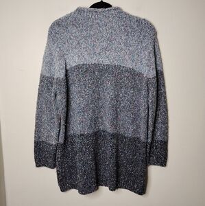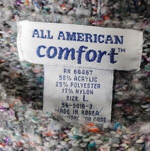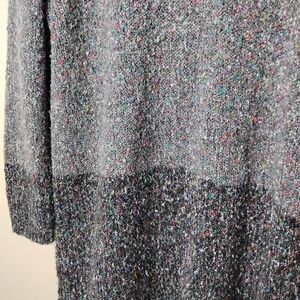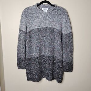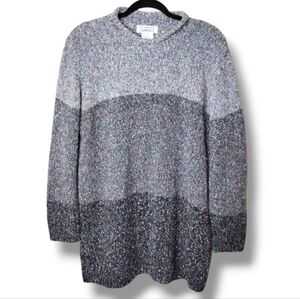 Authentic 1990s All American Comfort pullover in a heathered confetti/nep knit with soft colorblock panels of grey. Rolled crew neckline, relaxed fit, and tunic length—perfect with leggings, jeans, or a pleated skirt for dark-academia/cabincore looks.