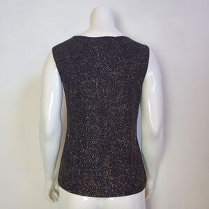 Vintage 90s Connected Apparel black sleeveless scoop neck tank top with silver and gold rhinestones.