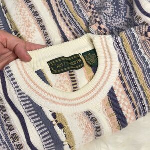 Rare Vintage 90s Coogi Style Pastel Paisley 3D Knit Sweater by Croft & Borrow