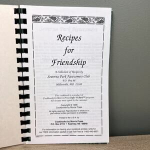Vintage 90's Cookbook Recipes for Friendship Severna Park Maryland Spiral Bound