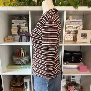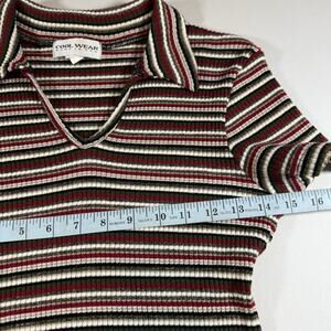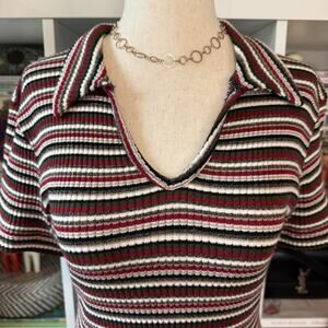 Vintage 90s Cool Wear Mod Striped Slim Ribbed Short Sleeve Polo - Red Wms L