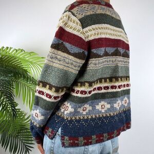 Vintage 90s Cottagecore Aztec Patchwork Western Silk Wool Cardigan Sweater / L