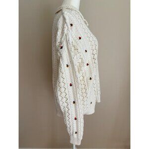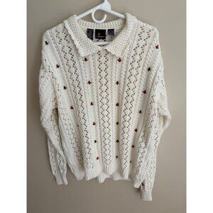 Vintage 90s Cottagecore Liz Sport Floral Embroidered Sweater Size Small