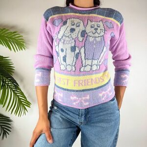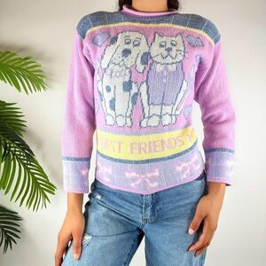 Vintage 90s Cottagecore Purple Kidcore Coquette Knit Grandma Cat Sweater /Sz: XS