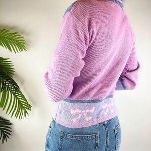 Vintage 90s Cottagecore Purple Kidcore Coquette Knit Grandma Cat Sweater