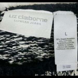Pre-owned Liz Claiborne Lizwear Jean's red, black & white knitted pullover sweater with snowflakes