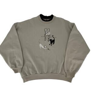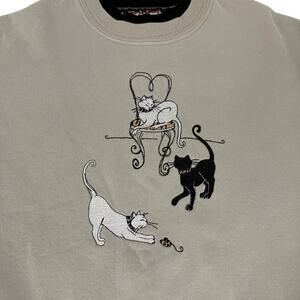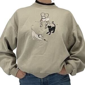 Vintage 90’s Crew Neck Sweatshirt Embroidered Cats Beige Tan Large