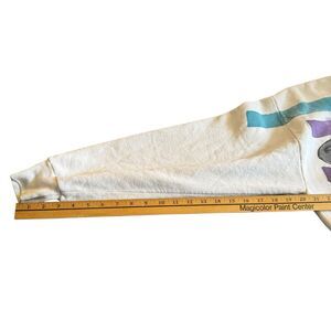 This Vintage 90s Crewneck Sweatshirt by Jerzees in size large offers a boho chic style with a garden core theme, perfect for women looking for a unique activewear piece. Made in the USA from a comfortable cotton blend material, this white sweatshirt features a classic crew neckline and is ideal for casual outings or workout sessions. The vintage design adds a nostalgic touch to the overall look, making it a standout addition to any wardrobe.