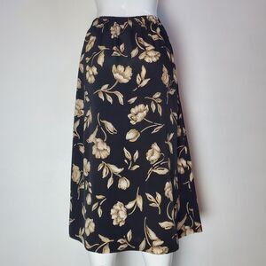 Vintage 90s Cricket Lane Black Cream Floral Skirt