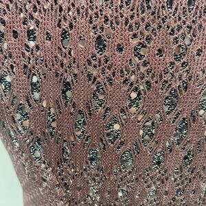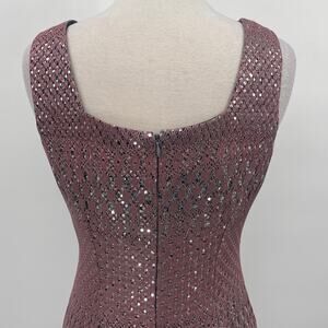 Vintage 90s Crochet Overlay Sequined Sheath Dress Squareneck Mauve Silver NEW 8