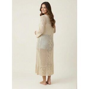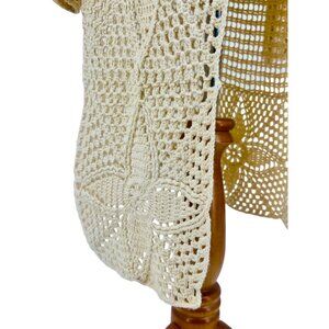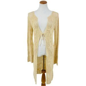 Vintage 90s Crochet Tie Front Boho Long Cardigan Duster