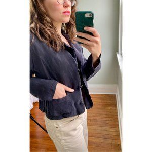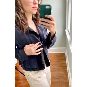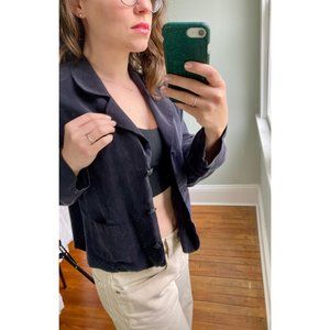 Vintage 90s Crop Top Button Down Black Long Sleeve Top S
