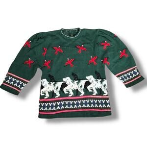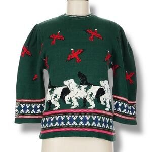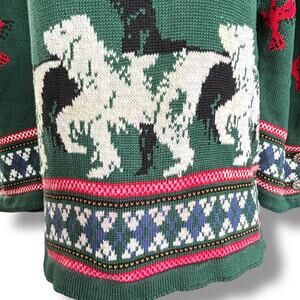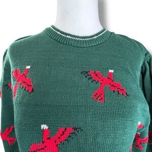 Vintage 90s Cullinane Knit Pullover Sweater Green Red Birds Sheepdogs Made USA