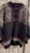 1990s Devold fair isle sweater with hook clips at the neck for closure.
