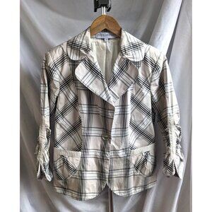 Vintage 90s DONNA DEGNAN Cream & Gray Plaid Windbreaker Blazer Size 10