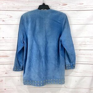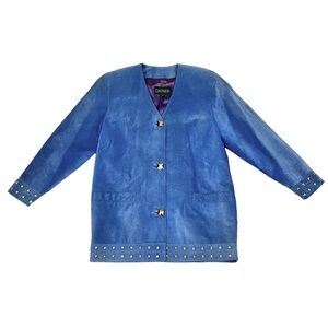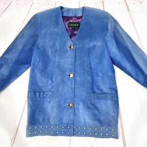 Vintage 90’s Danier Canada Blue Suede Leather Studded Blazer Jacket