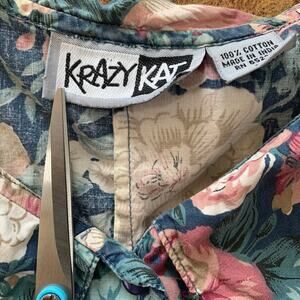 Vintage 90s Dark Floral Button Up Shirt Blue Pink Green Peter Pan Collar Cottage