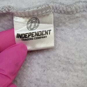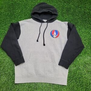 VINTAGE DARKSIDE HOODIE, 90S SKULL HOODIE, CROPPED BAGGY HOODIE, TWO-TONE HOODIE, GRAY BLACK TRIM HOODIE, RETRO DARKSIDE APPAREL, MEDIUM VINTAGE HOODIE, DARKSIDE SKULL DESIGN, 90S BAGGY FASHION, VINTAGE SKULL HOODIE.
