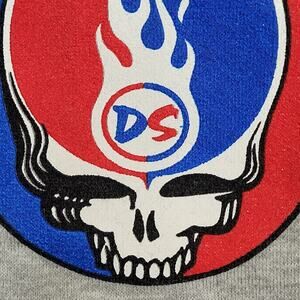 Make a bold statement with this vintage 90s Darkside cropped hoodie, medium size, featuring a skull design, two-tone gray and black trim.