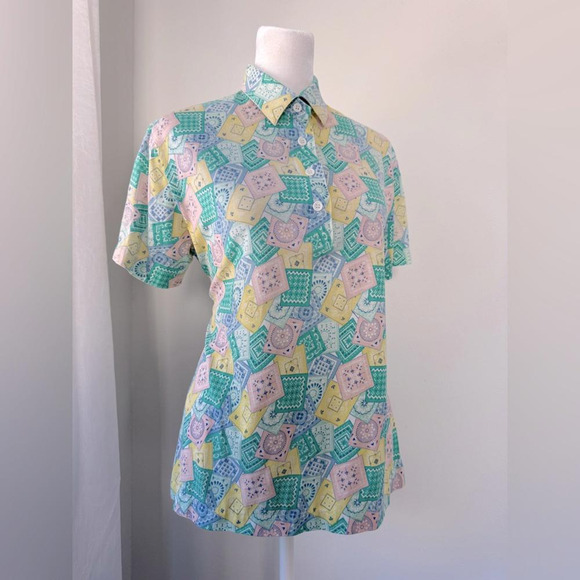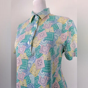 Vintage ‘90s David Smith Pastel Cottagecore Print Short Sleeve Polo Shirt