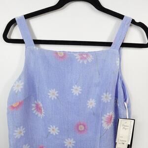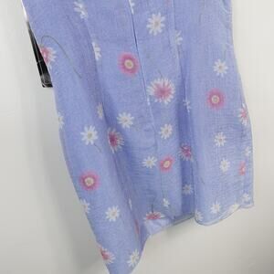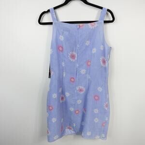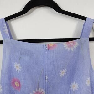 Vintage 90s Dawn Joy New Blue Daisy Floral Print Square Neck Shift Mini Dress