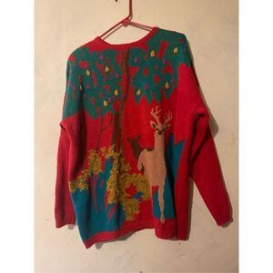 Beautiful Deer Scenic Sweater Sz XL has shoulder pads across chest 26”