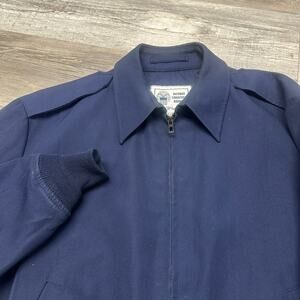 Vintage 90s Defense Logistics Agency Wings Collection DLA Navy Blue Mens 46R Wool Military Bomber Jacket USA