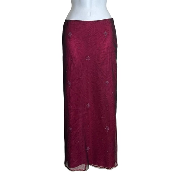 Vintage 90s Delias Embroidered Jeweled Maxi Skirt Size 7/8