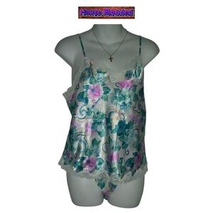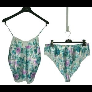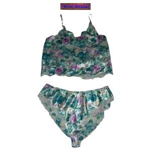 Vintage 90's Delicates Satin Lingerie Set Floral Lace Cami Panties Cottage Core
