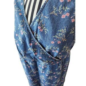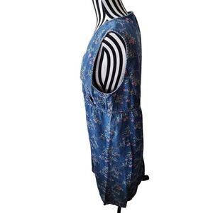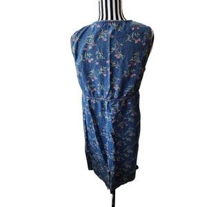 Vintage 90s Demin Jean L Floral Sleeveless Dress Blue